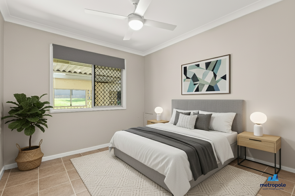 - Oversized master bedroom complete with built-in robe, split system heating and cooling and ceiling fan