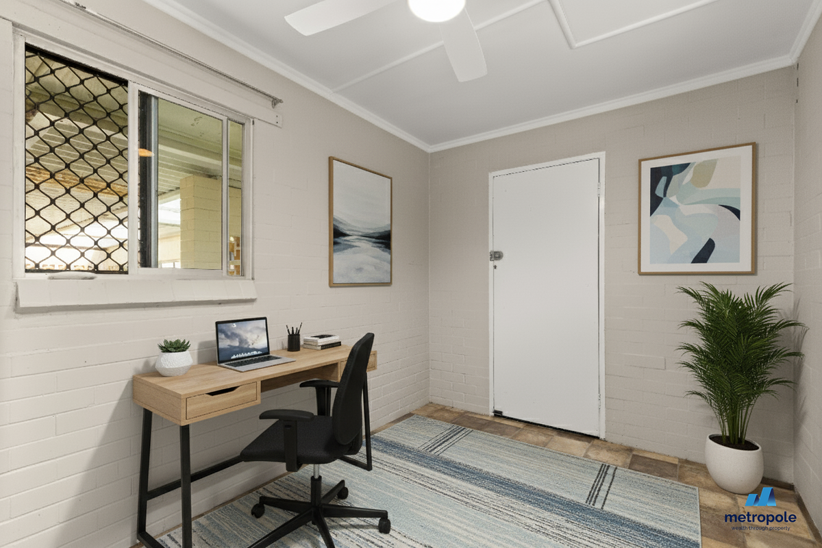 - Dedicated study or possible fourth bedroom with ceiling fan
