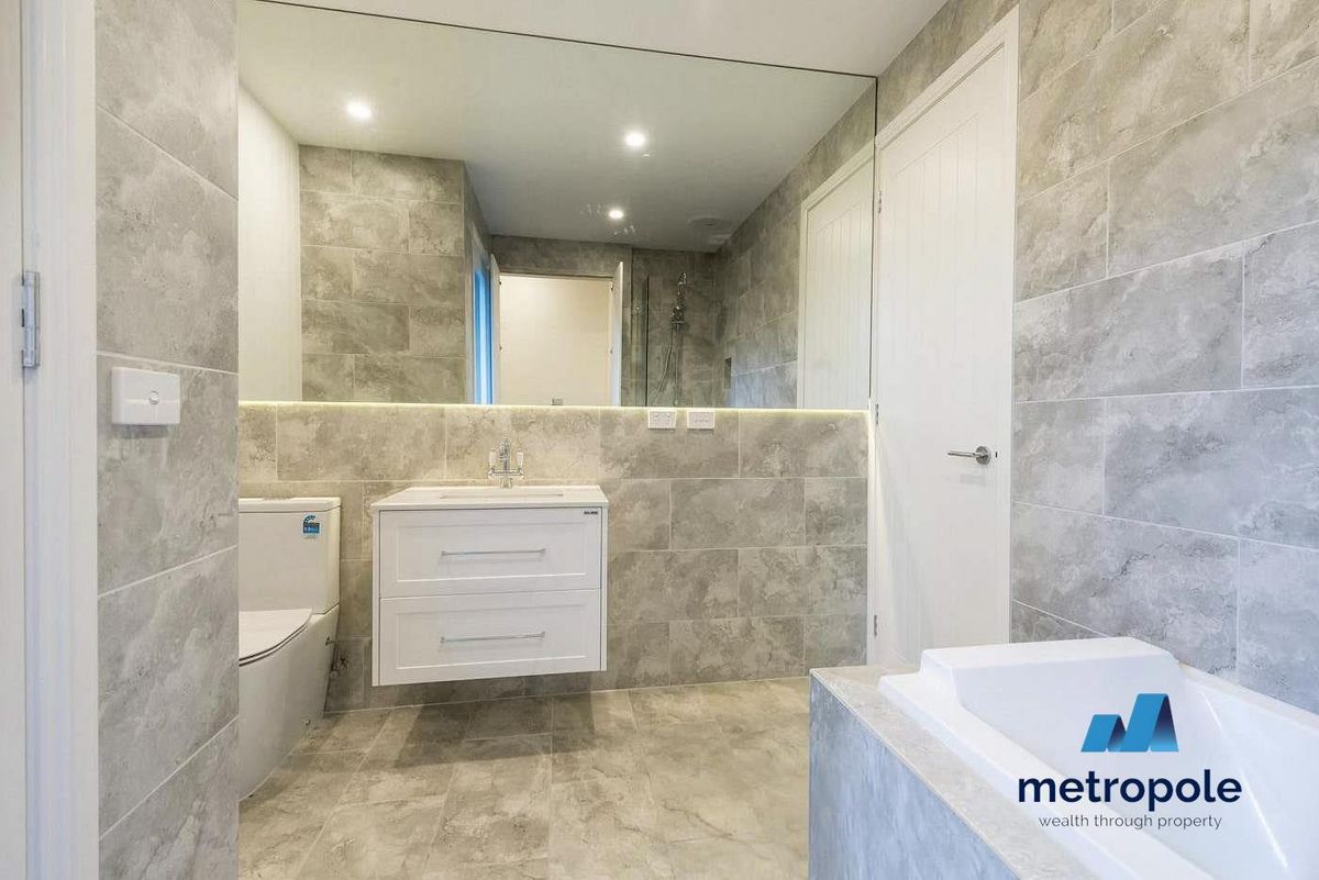 · Main bathroom feels like a 'European Grecian' hideaway with floor to ceiling tiles, shower over bath and euro laundry with Garden access