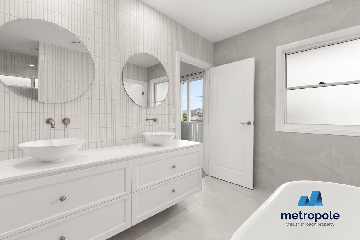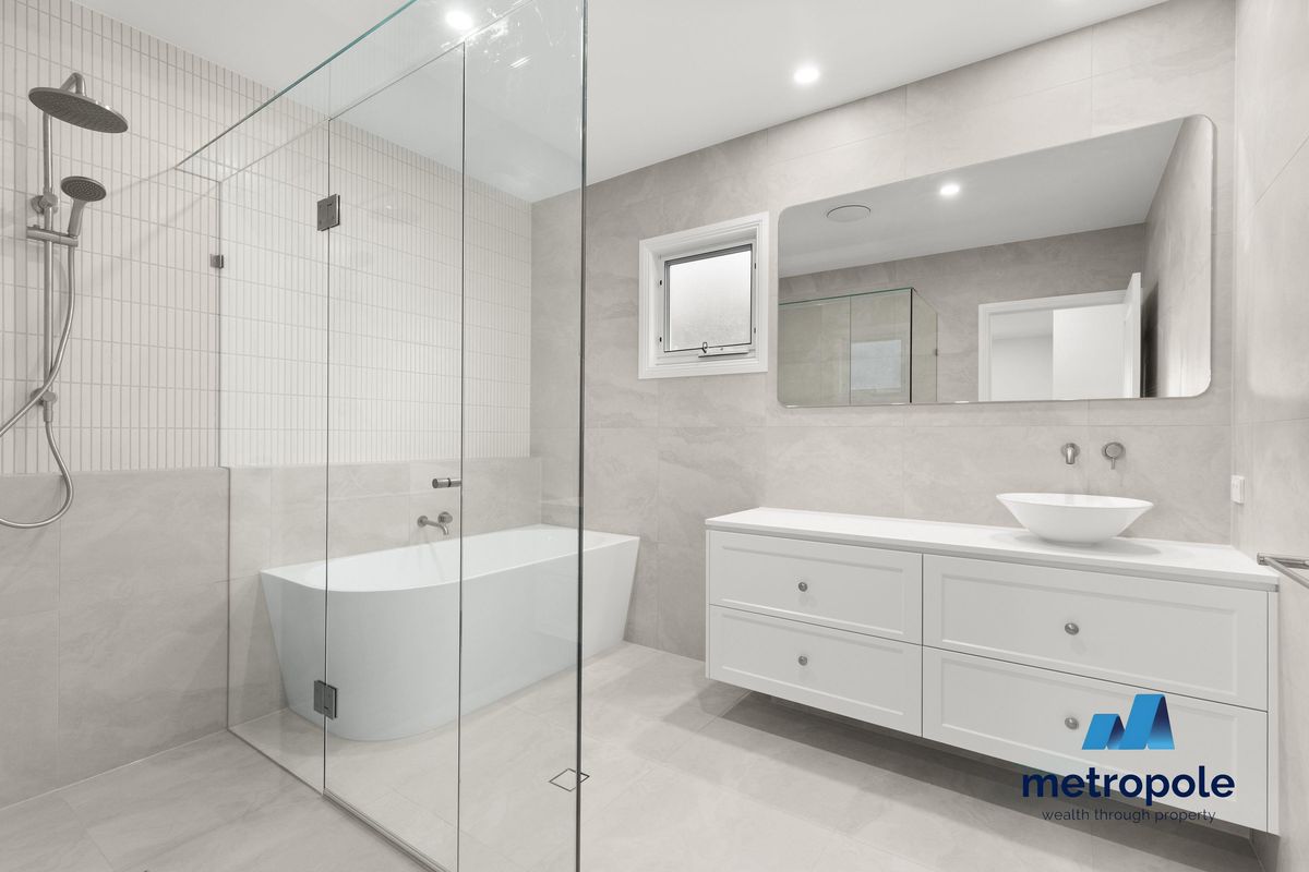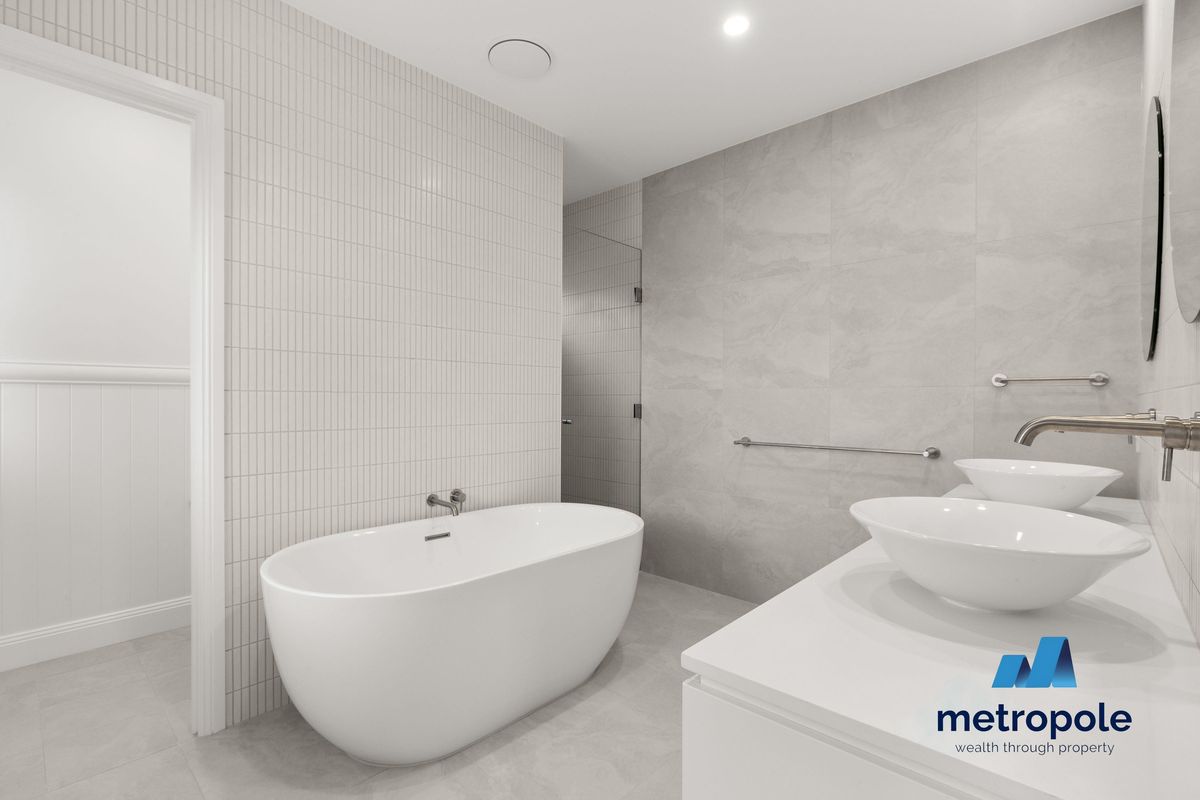- Luxurious master ensuite with free standing bath, his and hers basins, concealed toilet, and separate concealed shower