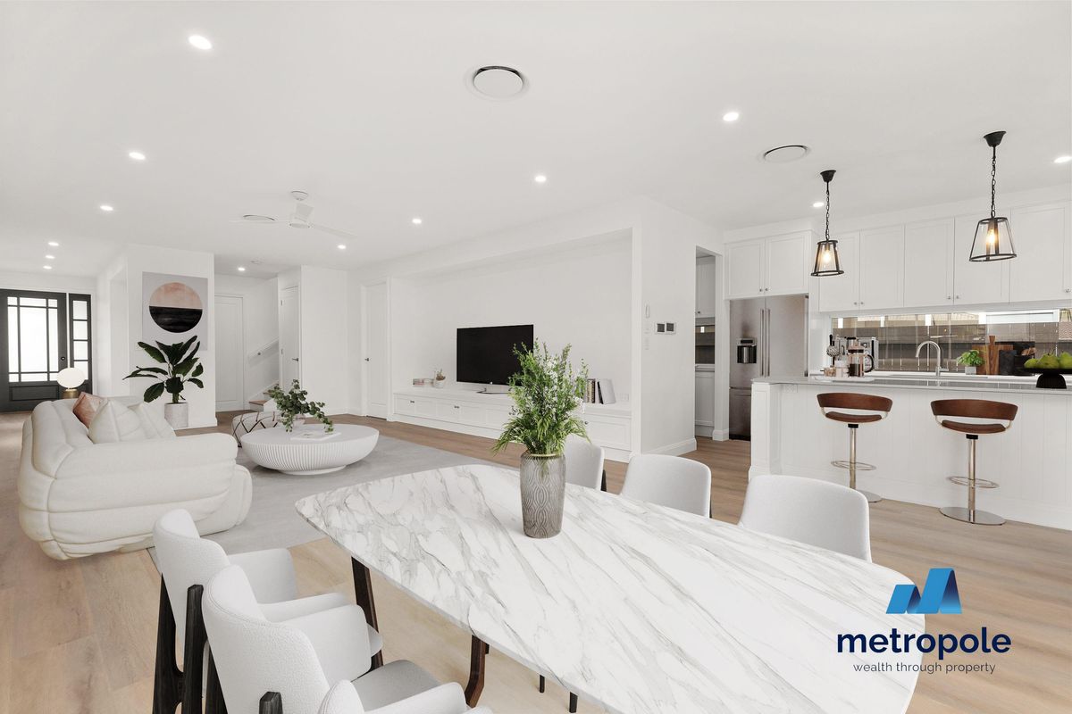 This Hamptons style four-bedroom, two-and-a-half-bathroom home has been built to exacting standards. Designed to make the best of our stunning Brisbane climate, you'll find no small spaces in this beautifully presented residence. Incorporating multiple indoor and outdoor living spaces plus a media room or study, a true entertainer's kitchen and generously sized bedrooms, this home effortlessly combines elegance, functionality, and modern design.