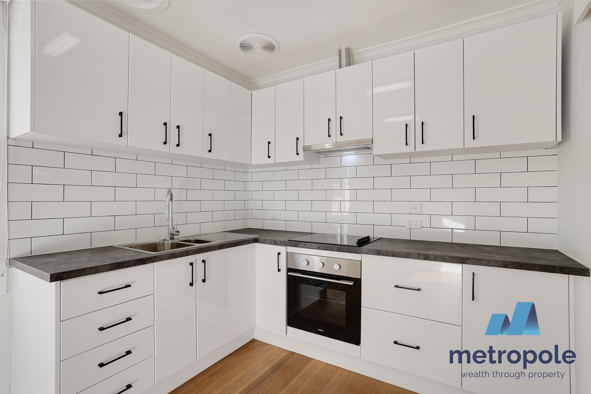 - Modern eat-in kitchen with electric cooktop, rangehood, oven and plenty of bench and storage space